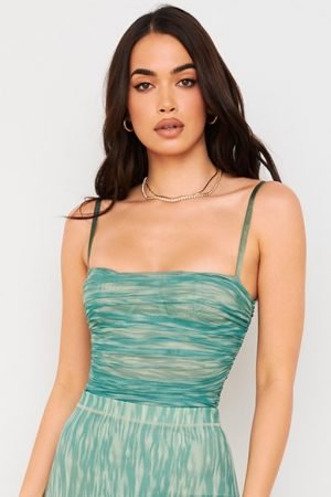 Pearl Ivy Print Ruched Mesh Bodysuit