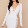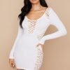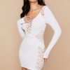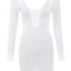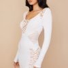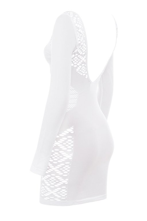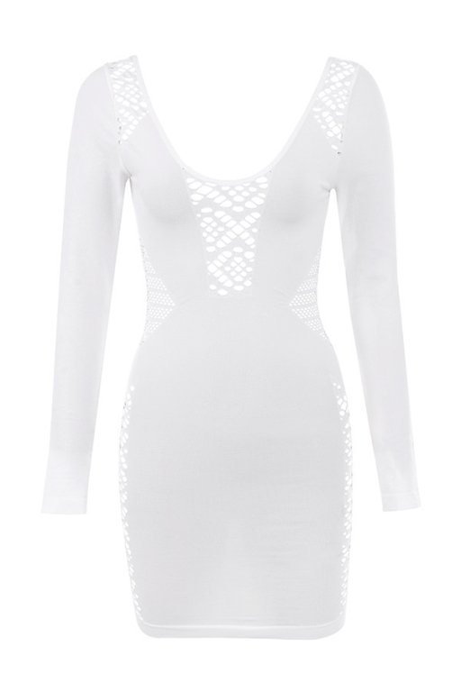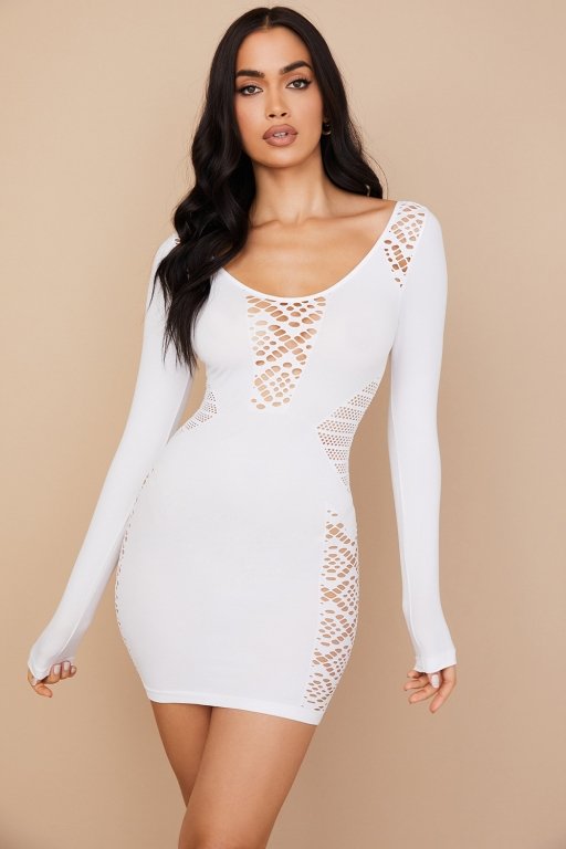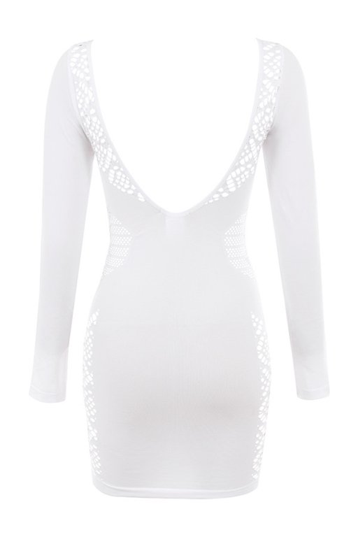 ‘Alana’ is our oh-so-sexy delicately trimmed ‘little white dress’, designed with a web netting that reveals just enough skin to the shoulders and waist and expanding to the chest and side leg panels is what gives it that super sexy vibe and feminine feel. It is made from our stretch knit and has a flattering figure hugging fit that falls to a mini hem, the long close fitting sleeves makes it perfect for the colder weather.