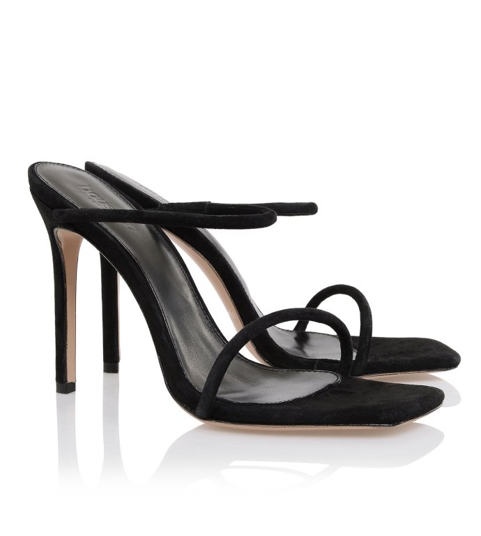 ‘Barefoot’ are our most ‘barely-there’ sandals. They have a delicate double skinny strap cut from the softest real suede, square toe and stiletto heel. We love these teamed with dresses or mini skirts to realy highlight great legs.