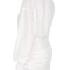 This ultra stylish piece is your ‘wear anywhere’ go to. It’s cut from a gauzy light fabric that’s just perfect for Summer dressing. It has a deep plunge neckline that drapes to the waist. flattering gathers to the hip and dreamy floaty sleeves that are finished with deep cuffs. We love the way the skirt crosses over at the front with a tiny thigh slit that parts prettily as you walk.