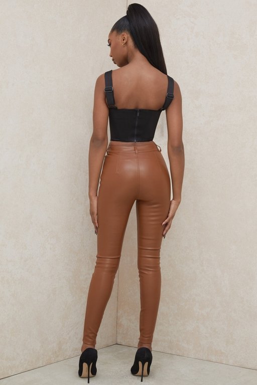 Materials: PU Leather (55% PU, 45% Polyester) Satin (97% Polyester, 2% Elastane)