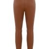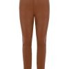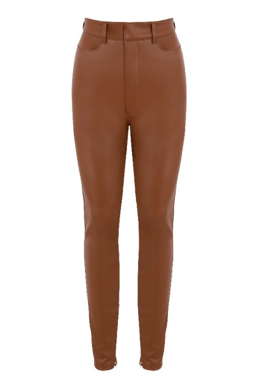 These super slim fit trousers are cut from the softest vegan leather with the perfect amount of stretch. They sit slightly higher on the natural waist for ultimate comfort with a front fastening and have pockets to the front and a smooth finish to the back. Designed with belt loops means you can add a belt to cinch the waist right in for the perfect silhouette. We love the added touch of the zips to the hem on the side of both legs which enables them to sit super narrow. They are fully lined in a lightweight satin for a smooth and non sticky feel. Wear with our ‘Dahlia’ white high neck blouse and strappy sandals.