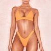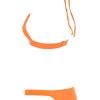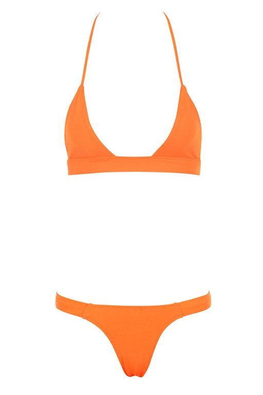 This hi-viz, high octane swimsuit is perfect for poolside lounging. It has a halter top with neck ties and swan clasp to the back. The briefs have a mini cut with full coverage to the booty. Wear yours under cut offs when you’re not in the pool.