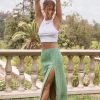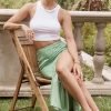 HouseofCB highlights the female form beautifully, which is why ‘Heidi’ is so flattering. It’s cut from a lightweight crepe and decorated in a pretty green floral. It sits high on the natural waist and is spliced with a thigh-grazing split for a flash of skin and ensures easy movement. ‘Heidi’ falls to a midi length and is fully lined with a zip to the back for easy on. Wear yours with our ‘Road Trip’ Mistress Rocks White Knit Cropped Tank Top.
