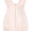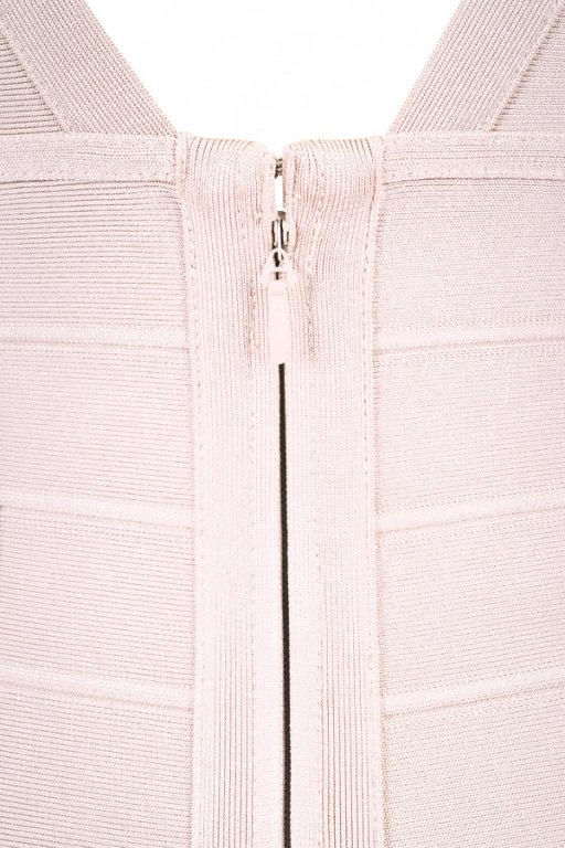 Make room in your wardrobe for this signature piece. Featuring a v neck cut, curve enhancing lines and in gorgeous nude. Made from our signature bandage fabric that holds you in & smooths you out.