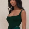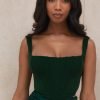 Our ‘Ninetta’ corset is beautifully crafted from a stretch power mesh in a captivating rich emerald green tone to welcome in the start of the colder season. Inspired by traditional corsets, its boned to create an hourglass silhouette and has a square neckline that flatters the bust. The side panels are constructed from our tonal power mesh that really cinch the figure in. It zips up the back for easy on and we love seeing this teamed over jeans such as our ‘Antonia’ High waisted jeans or dress it up with our ‘Saffy’ Black vegan leather trousers.