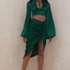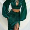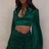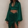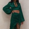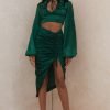 ‘Vandra’ has the perfect balance between cool and elegant. It’s cut from our lustrous duchess satin in a deep evergreen tone. The bodice has a close fitting feel with enough room for movement. It has a cropped silhouette with a centre front opening from the neck to the underbust seam with gentle ruching to the front and slim ties for you pull in those beauties to create the perfect cleavage. We love the way the balloon sleeves add just the right amount of drama to this already perfect design. It is fully lined in a super soft stretch satin and has a zip to the back for easy on. Compliment the cropped hem with our ‘Petronella’ skirt as our designers intended for an ultra chic look this season.